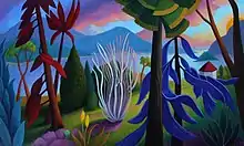 The natural beauty of the landscape and coastline of British Columbia has also been a major theme in her work since the late 1980s and continues to inspire her work.[2] In this regard she follows in the footsteps of the Group of Seven, particularly Emily Carr.[2]