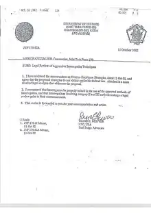 - ↑ Beaver, Diane E. (2002-10-11). "Request for approval of Counter-Resistance Strategies" (PDF). JTF-170. pp. 3–12. Archived from the original (PDF) on 2006-02-13. Retrieved 2023-08-01.
