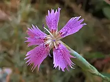 Dianthus lusitanus is a species of Dianthus native to the Iberian Peninsula, and to the Atlas Mountains of Morocco and Algeria.[2] A hardy tussock-forming perennial growing on rocky slopes, in times past its numerous stems were used to make brooms.[3]