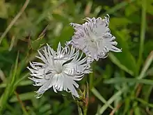 Dianthus monspessulanus, the fringed pink, is a herbaceous perennial plant of the genus Dianthus of the family Caryophyllaceae. The genus name Dianthus derives from the Greek words for divine ("dios") and flower ("anthos"), while the species name monspessulanus means "from Montpellier".