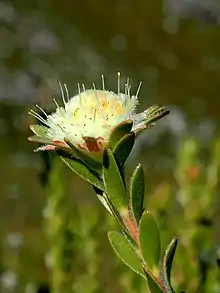 Diastella fraterna, commonly known as the palmiet silkypuff, is a plant of the family Proteaceae native to South Africa.