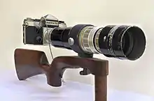 A characteristic model was the Diax Ia for interchangeable lenses, with 3 different viewfinders in the top, each in a different color: blue for 35mm lenses, yellow for 85 or 90mm lenses and neutral for 45 or 50 mm lenses. The Diax II, Diax IIa and Diaxette models were rangefinder cameras. The b models were like the a models, but with a rapid film advance lever. The Diax system also included 10 lens types covering 6 focal lengths with a common filter thread size of 40.5mm.[1]