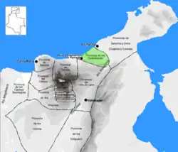 ![]() Location of the town and municipality of Dibulla in La Guajira Department. | |