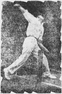 Along with three other young Victorians he made his first-class debut for Victoria in 1929–30 against Western Australia, taking four wickets and top-scoring in the first innings with 58.[4] A month later he played against Tasmania, taking 3 for 27 and 4 for 50, getting the 15-year-old Jack Badcock stumped off his bowling in each innings on his first-class debut.[5] Victoria won both matches.