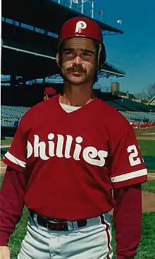 By 1984, Thon was drawing excitement about his potential. "He's already the best shortstop in the league," said Craig Reynolds, whom Thon had replaced as the Astro shortstop. Al Rosen, Thon's general manager, said, "when I see Dickie Thon, I see a future Hall of Famer."[1] His career was permanently altered on April 8, 1984, when he was hit in the face by Mike Torrez's fastball.[2] Bill James thinks Thon might have been a Hall of Famer had the injury not occurred.[3] The pitch broke the orbital bone around his left eye and ended his 1984 season. He returned in 1985, but had problems with depth perception that permanently hampered his potential.[4] In 1991, Thon received the Tony Conigliaro Award in recognition of his recovery from this severe injury.