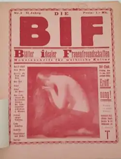 Die BIF – Blätter Idealer Frauenfreundschaften (Papers on Ideal Women Friendships), subtitled Monatsschrift für weibliche Kultur (Monthly magazine for female culture), was a short-lived lesbian magazine of Weimar Germany, published from either 1925 or 1926 until 1927 in Berlin. Founded by lesbian activist Selli Engler, Die BIF was part of the first wave of lesbian publications in history and the world's first lesbian magazine to be published, edited and written solely by women.