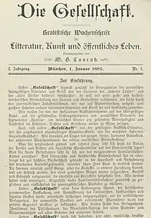 Die Gesellschaft (German: Society) was a magazine which was published in German Empire between 1885 and 1902. It billed itself as the "organ of contemporary literary youth".[1] It is known for its strong support for naturalism and its founder and editor Michael Georg Conrad.