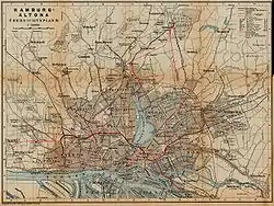 Map of railway lines in Hamburg (ca. 1910) (with the lake Diebsteich, the train station not yet built)