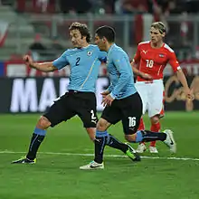 Lugano made 95 appearances for the Uruguay national football team[52] after making his debut in the 2006 FIFA World Cup qualification match against Paraguay.[53] He has represented the country at two FIFA World Cups, two Copa América tournaments and one FIFA Confederations Cup. He captained the team for eight years, beginning in May 2006, when he was given the armband of La Celeste for the first time prior to a 2–1 friendly defeat to England at Old Trafford.