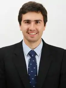 He is the youngest person to hold the position of President of the Chamber of Deputies, being elected in April 2020 at the age of 32.[5] As President of the Chamber of Deputies, Paulsen is third in the presidential line of succession, after the Minister of the Interior and Public Security and the President of the Senate.[6]