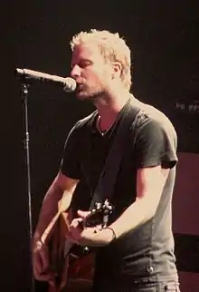 Frederick Dierks Bentley (/ˈdɜːrks/; born November 20, 1975)[2] is an American country music singer and songwriter. In 2003, he signed to Capitol Nashville and released his eponymous debut album. Both it and its follow-up, 2005's Modern Day Drifter, are certified Platinum in the United States, and his third album, 2006's Long Trip Alone, is certified Gold. It was followed in mid-2008 by a greatest hits package. His fourth album, Feel That Fire, was released in February 2009, and a bluegrass album, Up on the Ridge, was released on June 8, 2010. His sixth album, Home, followed in February 2012, as did a seventh one, Riser, in 2014. Bentley's eighth album, titled Black, was released in May 2016,[3] and his ninth, The Mountain, was released in June 2018. His tenth studio album, Gravel & Gold, was released in February 2023.[4]