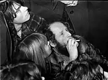 Kunzelmann was one of the founders of Kommune 1 in 1967.[12] In the late 1960s a series of militant and terrorist events were staged in West Berlin. Starting in autumn 1969 and continuing throughout the winter of 1970, 14 explosions have been recorded. Historians are arguing to this day, about whether Kunzelmann as key operator of the Far Left in West Berlin is to blame for instigating these acts of terrorism. Kommune 1 was a communal living group, that engaged in political opposition by means of lifestyle.[13] Kunzelmann engaged the political Far Left with his critique of middle-class sensibility. Kommune 1 was staged initially in the home of Hans Magnus Enzensberger, and moved on to the apartment of Uwe Johnson. The biographer Aribert Reimann claims that Kunzelmann considered sexuality merely a "utopian reference point" and that sexual liberation was not possible in the given social circumstances. This logic was conveyed by Kunzelmann in long sessions of "self-criticism", known as Psycho-Amoks, and K1 residents were expected to take mandatory pledges of polygamy.[14]