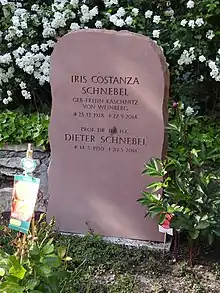 Schnebel died of a heart ailment in Berlin on 20 May 2018 at the age of 88.[7] His and his wife's grave is in Dahlem Cemetery.