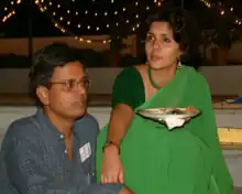 He married French language teacher Vibha Kamat in 1993, and they have two children, son Sahir, born 1999 and daughter Surabhi, born 2004.[7] He studied and worked as a software engineer in United States from 1981 to 1992 when he returned to India to write full-time.[8] He speaks Tamil, Hindi, Marathi, Konkani, English, French and Spanish.