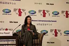 In her role as president of the Goldman Sachs Foundation, Powell led one of the world's largest corporate foundations.[49] Powell helped build and was responsible for all the Foundation's initiatives supporting and developing entrepreneurs around the world, including 10,000 Women and 10,000 Small Businesses.[13] 10,000 Women provides women entrepreneurs in developing countries with business education, access to capital and mentors.[50][51] Under Powell, Goldman Sachs partnered with International Finance Corporation and Overseas Private Investment Corporation to raise 600 million dollars, to provide access to capital for more than 100,000 women worldwide.[52] To realize this project, Powell worked closely with the State Department.[41]