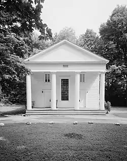 Dingman's Ferry Dutch Reformed Church is a historic Dutch Reformed church located on U.S. Route 209 in the Delaware Water Gap National Recreation Area at Dingman's Ferry, Delaware Township, Pike County, Pennsylvania. It was designed in 1837, and built in 1850 in the Greek Revival style. It is a two-story, clapboard clad frame building with a gable roof. It features a large gabled portico supported by four heavy Doric order columns.[2]