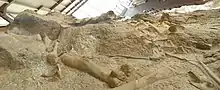Dinosaur bones on the quarry wall viewed east. This shows the bones lay three-dimensionally in the sandstone.