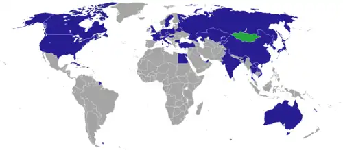 This is a list of diplomatic missions of Mongolia. Mongolia's foreign policy was traditionally aligned with the Soviet bloc, giving due deference to its other significant neighbour, the People's Republic of China. It now has warmer ties with the West (it opened its Washington, D.C. mission in 1989), but Mongolia's comparatively small stature and isolation means it still has a modest network of diplomatic missions.