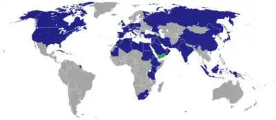Map of Yemeni diplomatic missions