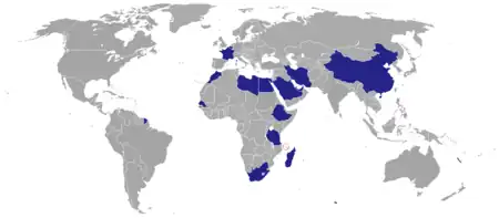 Map of Comoran diplomatic missions