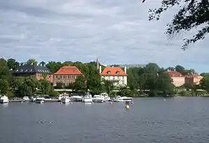 Diplomatstaden encompasses the area facing the Djurgårdsbrunnsviken bay which is located south of the easternmost part of Strandvägen. It is an exclusive residential area composed of a group of brick villas built mostly in the 1910s and 1920s.[1]