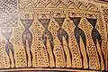 Since this amphora was reconstructed, we only get to see the decorative patterns that range from triangles to meanders on the vase's neck. Meanders are Greek key patterns that are a continuous line that folds back and forth that mimics the ancient Maeander River of Asia Minor.[13] It is 26 inches (66 cm) tall and 9 inches (23 cm) wide.[14] This amphora is seen as a clear example of the Geometric period and style.