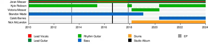 - Joran Messer – vocals, lead guitar (2010–present), guitar (2015–2018)