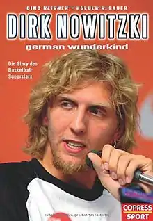 Dirk Nowitzki : German Wunderkind is a biography of the German NBA basketball star Dirk Nowitzki, written by German sports journalists Dino Reisner and Holger Sauer. It was published in 2004 by the German "Copress" publishing house. It follows Nowitzki's life as a boy in Würzburg, how he turned to basketball as a teenager, broke through in Germany and eventually became the franchise player of the Dallas Mavericks in the NBA.