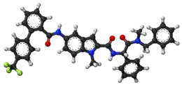 • FC(F)(F)c1ccc(cc1)c2ccccc2C(=O)Nc3cc4c(cc3)n(c(c4)C(=O)N[C@@H](c5ccccc5)C(=O)N(Cc6ccccc6)C)C