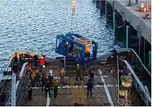 From September 2018 the search for the submarine was aided by the US-based seabed survey company Ocean Infinity.[61] The search started on 7 September 2018,[62] and was planned for up to 60 days, with payment only in the event that the submarine was found. Some 60 crew members conducted the search, with three officers of the Argentine Navy and four family members of the crew of ARA San Juan to observe.[63]