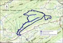 - ↑ Revised Land and Resource Management Plan for the Jefferson National Forest, Management Bulletin R8-MB 115E. Roanoke, Virginia: Jefferson National Forest, US Department of Agriculture. January 2004. pp. C-86–C-87.