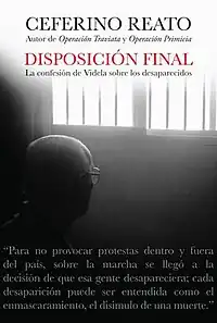 Disposición Final (English: Final disposal) is a 2012 Argentine non-fiction book by Ceferino Reato. It contains a long interview with Jorge Rafael Videla, de facto president of Argentina during the National Reorganization Process, and sentenced to life imprisonment for human rights violations. Videla detailed the reasons and procedures of the military government, and Reato provided the historical context.