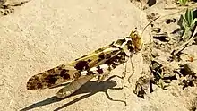 - ↑ "Dissosteira spurcata species Information". BugGuide.net. Retrieved 2019-09-22.