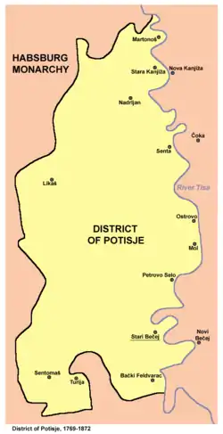 The District of Potisje (Serbian: Potiski krunski dištrikt or Потиски крунски диштрикт) was an administrative territorial entity of the Habsburg monarchy. It was formed in 1751 with headquarters in Stari Bečej, and existed for almost one century (until 1848).