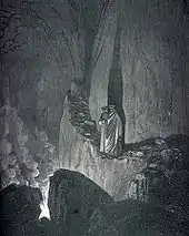 Dave Sim's Cerebus in Hell satirically utilizes Gustave Doré's engravings for the Divine Comedy, such as this one of Dante and Virgil in the Inferno, as backgrounds.[100]
