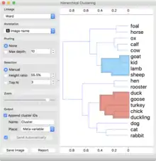 • ELKI includes multiple hierarchical clustering algorithms, various linkage strategies and also includes the efficient SLINK,[2] CLINK[3] and Anderberg algorithms, flexible cluster extraction from dendrograms and various other cluster analysis algorithms.
