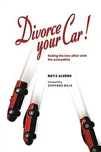 Divorce Your Car! Ending the Love Affair with the Automobile is a 2000 non-fiction book by Katie Alvord, with a foreword by Stephanie Mills.[1] It was first published on June 1, 2000, through New Society Publishers.[2] In the book Alvord proposes that automobiles have become more troublesome than helpful, as she argues that automobiles contribute to issues like noise and air pollution as well as traffic congestion and urban sprawl.[3]