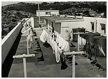 The Dixon Street Flats in central Wellington were completed in 1944[1] as part of the first Labour Government's state housing program. They were designed by the chief architect of the Department of Housing Construction Gordon Wilson. The Austrian-born architect Ernst Plischke was employed by the Department of Housing Construction at the time of the design and is popularly thought to have had considerable influence over the Dixon Street design, even though there is no documentary evidence to support this.[1][3]