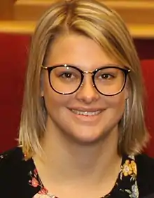Djuna Bernard (born 15 June 1992) is a Luxembourgish politician and member of the Luxembourg's Green Party, Déi Gréng. She has been a member of the Chamber of Deputies since December 2018,[2] when she replaced Sam Tanson who was made Housing and Culture Minister,[3] making her the youngest deputy in the Chamber at 26 years old.[4][5] She stood as a candidate for the co-presidency of The Greens in January 2019,[6] and subsequently won in March that year and currently serves with Meris Šehović.[7][8] Bernard and Šehović were both re-elected unopposed in March 2021.[9] She has declared her intention to stand in the South circonscription for the 2023 Luxembourg general election.[10]