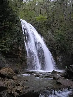 Djur-djur (Armenian: Ջուր-Ջուր — water-water; Crimean Tatar: Curcur — «onomatopoeia to the falling water»)[2] — waterfall is located on the Ulu-Uzen' river in the Crimean Mountains of Crimea. Waterfall height is 16 metres (52 ft). Djur-djur has not dried up ever, even in the dry years. Water from the waterfall falls into a small lake, and then comes into the river channel, which flows into the sea near the village Solnechnogorsk.[3]