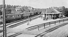 Djursholm's Ösby railway station in 1926 with the DjB tracks turning to the right towards central Djursholm.