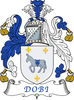 A line of the Dobi family had established landholdings in the village of Damës, in the region of Tepelena, but by the end of the 16th century most of them had moved to Gjirokastra and the cadet branch of the family that stayed back in Damës formed the core of the Iliriani family.[4] According to legend, throughout the centuries the Dobi family has been involved mainly with commerce, especially in the trade of mules for transport, which helps explain the presence of the mule in escutcheon of the Family's heraldic coat of arms.[4]