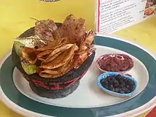 Doblada in Mexican food, is a corn tortilla or wheat tortilla, folded one time, forming a half circle, or folded twice forming a quarter circle, which is sauteed in oil, covered with sauce and sprinkled with cheese. As a garnish, it can accompany some dishes as in carne a la tampiqueña or be an appetizer, as in enchiladas or enfrijoladas with no chicken filling.