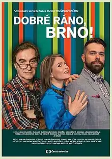 Dobré ráno, Brno! (Good Morning, Brno!) is a comedy television series directed by Jan Prušinovský, who also co-wrote the screenplay with Tomáš Holeček. Prušinovský was inspired by Czech TV show Dobré ráno. The series he exaggerates and parodies Dobré ráno, its crew and the behind-the-scenes situations.[1] Prušinovský wrote the script for the series based on his own experience when he himself was a guest on the Dobré ráno broadcast in the Brno studio.[2] The series starrs Jan Kolařík, Zuzana Zlatohlávková, Ondřej Kokorský, Simona Lewandowská, Roman Slovák, Tereza Volánková, Ivana Hloužková and Nikola Mucha.