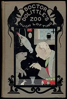 Doctor Dolittle's Zoo was written and illustrated by Hugh Lofting in 1925.[1] In the book, Doctor Dolittle returns from his voyages and sets his house in order. This includes expanding his zoo to include a home for crossbred dogs and a club for rodents. Doctor Dolittle's Zoo is different from all others because there are no cages; the animals stay there voluntarily and are free to leave whenever they want. The doctor also takes time to solve a mystery with the aid of Kling, the Dog Detective.