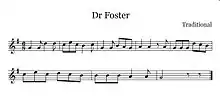 "Doctor Foster" is an English language nursery rhyme that has appeared in many anthologies since the nineteenth century. It has a Roud Folk Song Index number of 19288.