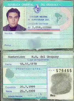 - ↑ "Modifican cédula buscando más seguridad". Uruguay. 20 March 2010. Retrieved 18 February 2012.