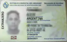 Uruguayan identification document for foreigners issued to an Argentine citizen.