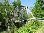 The Doe River spills over a weir dam immediately downstream of the covered bridge, and flows under two 1928 concrete arch bridges in Elizabethton, prior to its confluence with the Watauga River. The first concrete arch bridge is the Elk Avenue Bridge in downtown Elizabethton; the second is locally known as the Broad Street Bridge and carries traffic on Tennessee State Route 67.