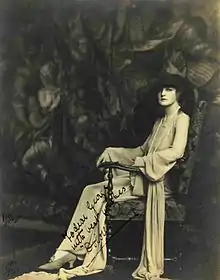 Dolores, like the other former mannequins, was only required to walk and pose when on stage. It was said that she never smiled during an appearance.[12] In 1920, however, she had her first speaking part in the musical comedy Sally, where she played the minor role of Mrs Ten Broek.[19] It is not recorded whether she was required to smile during the performance.[20][21]